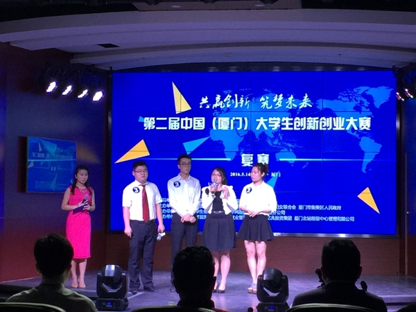 据了解,中国大学生创新创业大赛是福建省教育工委、福建省妇女联合会等多家单位联合主办。大赛于2015年11月21日启动,组委会远赴香港、澳门、台湾等地进行赛事推介,通过电视广播、报纸、网络等100多家主流媒体和微信、微博及户外广告的发动宣传,共收到811个参赛项目,其中港澳台及海外留学生48个。参赛的队伍包括纽约大学、美国伊利诺伊大学、清华大学、北京大学、澳门大学、厦门大学、台湾国立交通大学等高校的创业团队。经过两个多月赛程的层层筛选,最终选出了25个计划组、29个实战组,为其颁发证书和奖金。