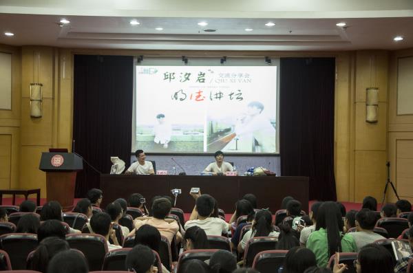 6月11日下午,江西财经大学“明德讲坛”开讲,因益智类电视节目《一站到底》《天才知道》而走红的江西籍“学霸”、人气作家邱汐岩做客讲坛第一讲。