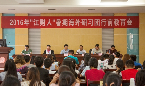 6月14日下午,2016年“江财人”暑期海外研习团行前教育会隆重召开。副校长王小平、阙善栋出席行前教育会。学工处、国际处、校友联络办公室等相关部门负责人共同见证江财学子们高涨的海外学习热情。