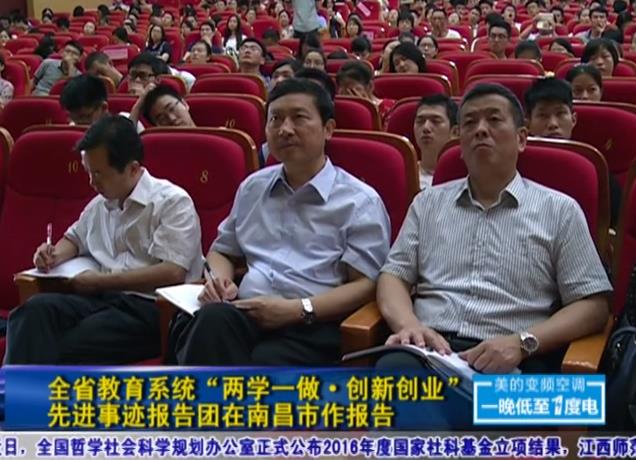 6月21日,全省教育系统“两学一做 创新创业”先进事迹报告会在南昌市第十九中学举行。江西省教育厅巡视员周金堂出席并主持报告会,校党委副书记易小明率党委组织部、宣传部、学工部、统战部教师党员代表以及学生党员代表共30人听取了报告会。