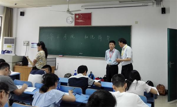 6月23日至7月1日,是我校2015-2016学年第二学期本科生期末考试时间。为加强考试管理,严肃考风考纪,保障考试各环节顺利进行,从6月23日开始,校长王乔、校党委副书记易小明、副校长蒋金法、纪委书记杨建林、副校长邓辉、副校长王小平、校长助理李良智等校领导以及教务处等部门负责人深入蛟桥园、麦庐园两个校区考试现场进行巡视检查,指导考务管理工作。