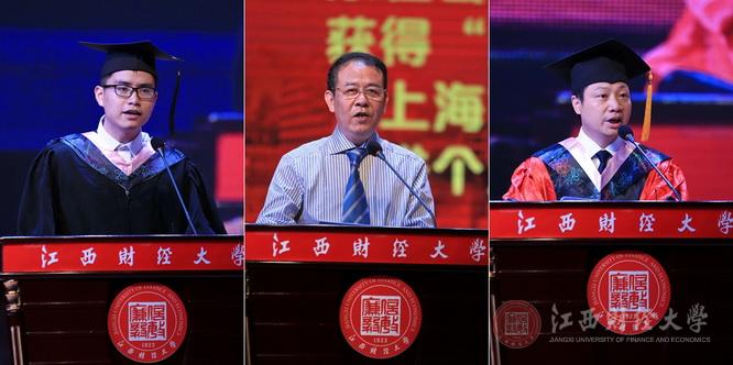 校长王乔以“生活还有诗和远方”寄语全体毕业生。他说,就读大学,走向社会,同学们至少要担负以下三种角色:从人才特色看,你们是江财人;从综合素养上看,你们是文化人;从公民责任承担来讲,你们是社会人。