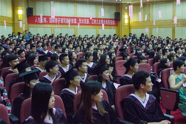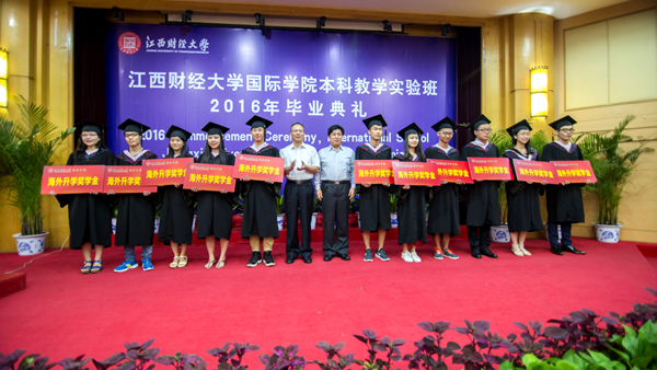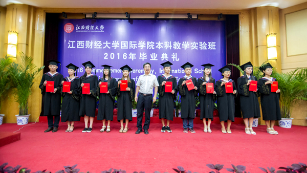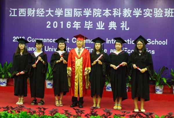 6月28日下午,国际学院2016年本科生毕业典礼在国际学术交流报告厅隆重举行。校长王乔、副校长蒋金法、纪委书记杨建林、副校长王小平、校长助理李良智出席典礼。在党办校办、宣传部、学工部、校团委、校友办、会计学院、国际经贸学院、金融学院的相关负责人、国际学院全体教职员工、2016届全体班主任、家长代表及任课教师代表的共同见证下,国际学院2016届毕业生们为四年本科时光画上一个完满句号,开启了他们奔赴社会的新篇章。