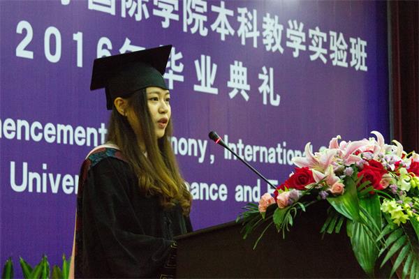 毕业生代表姜翔议同学代表全体2016届毕业生向母校表达了浓浓的留恋与感恩,她说,母校是他们心中永远的坚实后盾,是学院的培养赋予了同学们未来的无限可能。刘满凤老师作为教师代表向全体毕业生表达了衷心的祝福,她鼓励同学们终身学习,终生受益;发挥才能,勇敢实践;谨记良知,做最真实的自己,以最大的概率去拥抱未来。