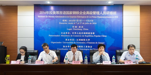 7月8日下午,2016年拉美等西语国家钢铁企业高级管理人员研修班开班典礼举行。研修班由商务部主办,江西财经大学承办、中国钢铁工业协会协办。江西省商务厅副厅长李文尧、中国钢铁工业协会国际合作部主任苏长永出席了开班典礼,授课老师代表及学员参加了典礼。