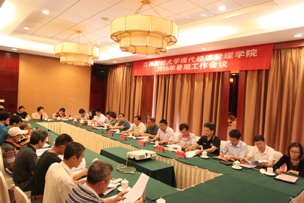 7月9日至10日,现代经济管理学院在共青城市召开2016年暑期工作会议。全体院领导班子成员,学院各部门、教学系部负责人齐聚共青热土,研讨学院工作、共谋未来发展。
