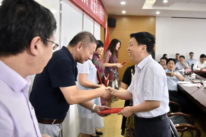 校长王乔为获得江西省教育厅“从教30年”荣誉的程岚、吴永兵、杨晓玲、程淑珍、袁园、陈家洪、罗良清、柳键等八位老师颁发了荣誉证书。