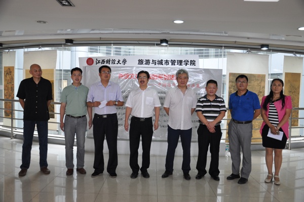 为弘扬中国优秀传统文化,充分挖掘传统文化在大学生思想政治教育中的作用,引导大学生热爱传统文化,丰富历史知识,拓展人文思想,培育其良好的品德修养,塑造其优秀的行为品格。9月9日,由我校旅城学院联合江西厚实文化传播公司、江西新华印刷集团举办的“再现传统文化,培育时代新人”为主题的优秀传统文化中国历史文化名人书画展,在我校麦庐校区图文信息大楼七楼举行。蒋金法副校长、江西教育出版社、江西新华印刷集团,南昌大学人文学院以及我校旅城学院、人文学院、艺术学院的专家学者出席了活动。