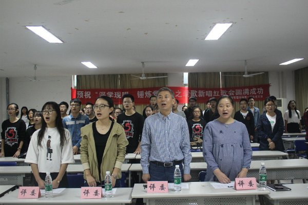 9月29日下午,工商管理学院学生党支部举办“深学现唱,锤炼党性” 暨第八届“党旗飘飘”红歌会。来自学院18个班级的200余党员和入党积极分齐聚一堂,唱响红歌献礼祖国67岁华诞。活动旨在进一步传承红色基因、弘扬党的优良传统作风,工商管理学院结合“两学一做”,以国庆、纪念红军长征胜利80周年等重大党史事件为切入点,推出激活“红色基因,献礼祖国华诞”活动。