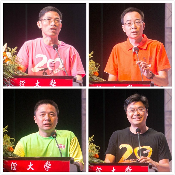 1996届工企班班主任刘彪文老师的发言同样充斥着真情,刘老师从“欢迎、幸福、情义、祝贺、祝福”五个方面表达了对学生们的深深的爱,“让我们期待下次相会”,所有的不舍与真情都融化在这简单的词句中。接下来是校友代表发言,1996届财政学班莫红民幽默诙谐的言辞让同学们有了当年轻松愉快的感觉;1996届投资班胡屏岗的讲话感人至深,一句“江财是我们的妈,而且是亲妈”引起了所有同学的共鸣;1996届投资1班柳习科以真挚朴实的话语分享了自己的个人经历,告诫我们“脚踏实地,努力前行”;1996届工商2班张利江风趣自然的发言赢得了满堂喝彩。