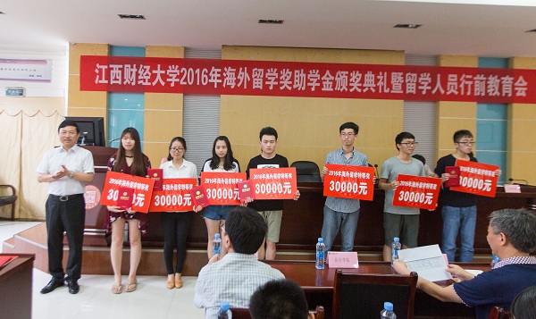 为了让更多优秀的江财学子有机会赴海外交流学习,在积极搭建平台拓宽渠道的同时,学校还加大投入,于2015年正式出台《江西财经大学优秀本科生海外留学奖助学金评审暂行办法》,每年设海外留学奖学金专项经费300万元,用于奖励和资助学生海外学习交流活动包括海外名校升学、海外留学、短期交流、国际语言考试类四大类,进一步激发了广大学生的海外学习交流热情。2016年共有近90位同学获得了海外留学类奖学金,6个暑期海外研习团获得短期交流类奖学金,近160名同学获得了国际语言考试类奖学金, 20名研究生获得资助赴海外名校交流,学校海外留学奖学金共计发放200余万元。特别值得一提的是,为了“让贫困学生也能实现海外留学的梦想”,在海外留学奖学金中,专门设置了用于全额资助优秀贫困生的项目,2016年有4名家境贫困的学生通过学校全额资助赴海外合作院校交流学习。