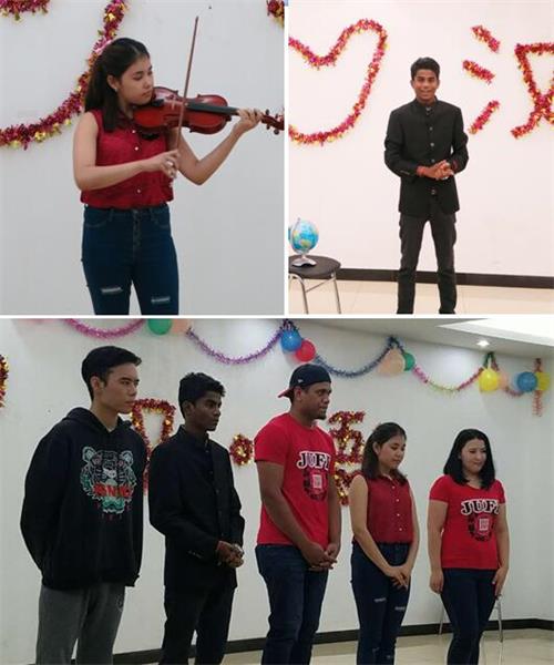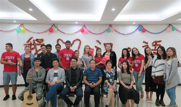 我校选拔赛分为三个环节。在第一环节的中文自我介绍中,加拿大籍华裔选手徐聪同学的表现自然最强,字正腔圆不说,还能滔滔不绝尽情发挥。才艺展示环节里,克里斯、徐聪的吉他弹唱,阳光的小提琴独奏,太阳的脱口秀,阿克波塔的俄语及英语歌曲演绎各具特色,该环节比赛高潮迭起,引发观众阵阵掌声。最后的即兴抽题演讲环节则最具挑战性,尽管大家用不太流利的汉语费劲讲述着自己“最想去的地方”“最难忘的事”“最喜欢吃的菜”,但看得出来,大家语言描述颇具逻辑性,潜力无穷。毕竟,大部分同学学习汉语的时间不过1年左右。