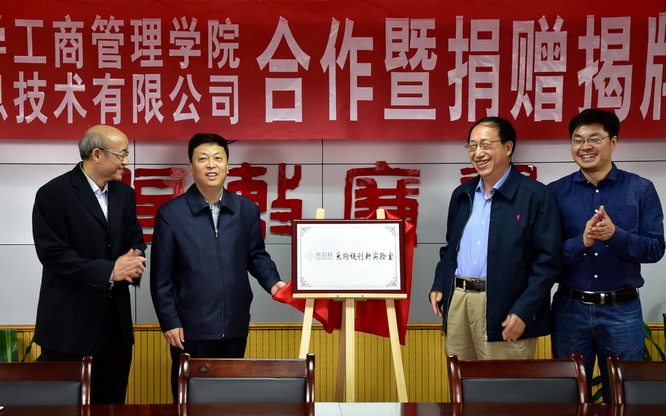 张利江校友代表上海汇招信息技术有限公司向我校基金会捐赠人民币100万元现金和价值人民币500万元软件。此款将用于我校工商管理学院成立“易招标采购链创新实验室”建设和运营以及组织易招标采购链创新大赛活动经费。