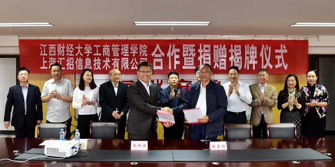 校友之情朝朝念,感恩之情代代传。10月18日上午,我校与上海汇招信息技术有限公司合作签约暨捐赠揭牌仪式在麦庐北区英孚大楼隆重举行。校长王乔、副校长阙善栋、江财上海校友会会长康志强、上海汇招信息技术有限公司首席执行官张利江校友出席仪式。上海汇招信息技术有限公司首席营销官石新泓、品牌与营销主管汤静雯和我校校办、校友办、计算机实践教学中心、工商管理学院等部门负责人参加签约仪式。仪式由工商管理学院党委副书记黄雨虹主持。