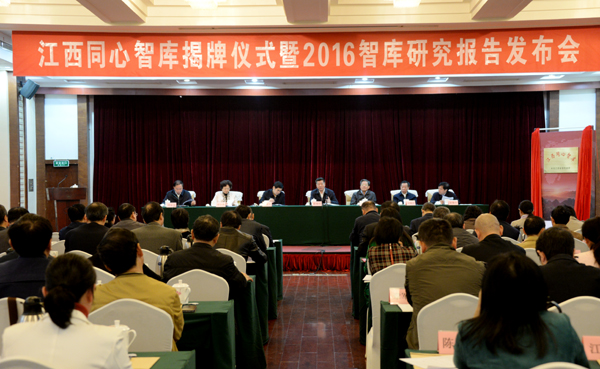 11月3日,江西同心智库揭牌仪式暨2016智库研究报告发布会在南昌举行。省委常委、省委统战部部长蔡晓明,省政协副主席李华栋、汤建人、刘晓庄、郑小燕、孙菊生出席揭牌仪式并为江西同心智库揭牌,为首批智库专家颁发聘书。会上发布了题为《打造美丽中国“江西样板”的战略重点及评价体系研究》的智库研究报告。