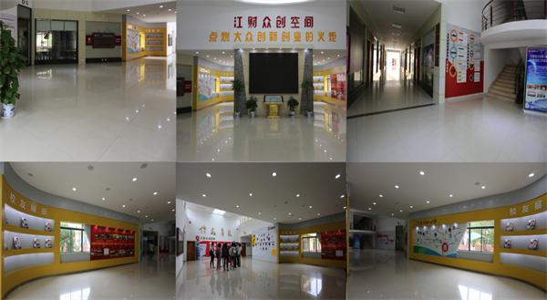 提升众创空间文化内涵,通过总结大学生创业孵化中心近十年来的工作成果,形成别具特色的“创业孵化大事记”、“创新创业竞赛成果展”、“创业导师墙”、“入孵项目展”、“入孵项目LOGO展”等内容逐步丰满江财众创中间文化内涵建设和氛围营造。江财众创空间已点燃大众创新创业的火炬,让我们携手将创业梦想进行到底!
