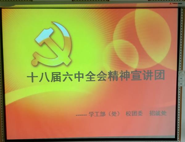11月15日上午,校党委宣讲团成员、马克思主义学院党总支书记江水法教授,为学工部(处)、团委和招生就业处三部门宣讲十八届六中全会精神,校团委书记习金文主持报告会。