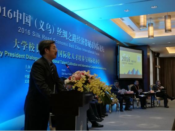 蒋金法副校长带领国际经贸学院袁红林院长和余昌龙博士一行参加了论坛。会议期间,蒋金法对中国义乌小商品市场进行了实地考察,向各国政要、中外大学校长讲述江财的国际化办学特色,并在大学校长对话中做了“对接一带一路倡议,提升江财国际化办学水平”的主旨演讲,提出要紧紧围绕一带一路国家发展战略,精准瞄准国际化人才需求市场,与一带一路沿线国家高校一道,开展国际化人才培养合作;与国内合作高校一起,进行一带一路国际智库建设和义乌国际小商品城人才培养;与义乌地方政府、企业和本地高校合作,对口教学和科研合作,将义乌打造成为江西财经大学国际化人才培养的坚实平台,成为我校国际化人才实践教学、学生实习和就业创业的重要窗口。