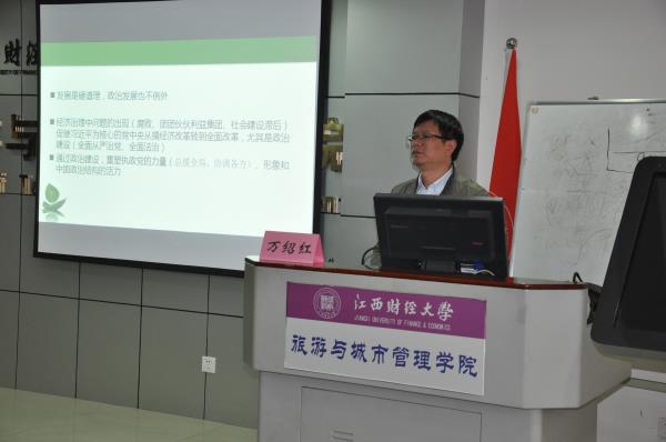 11月16日,我校党的十八届六中全会精神宣讲团成员、马克思主义学院副教授万绍红分别到旅游与城市管理学院、信息管理学院对十八届六中全会精神解读宣讲。