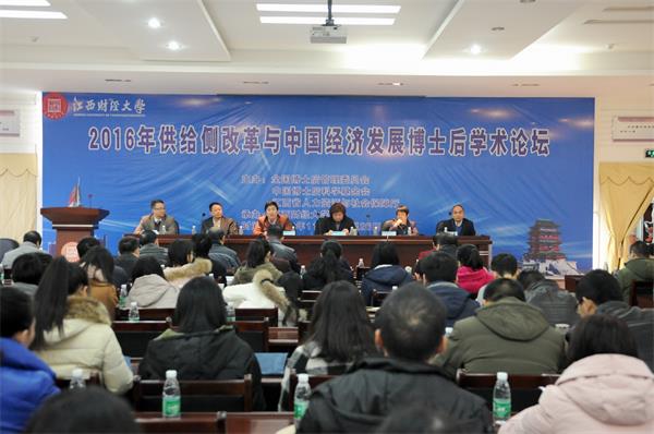 11月25日,2016年供给侧改革与中国经济发展博士后学术论坛在我校举行。论坛由全国博士后管理委员会、中国博士后科学基金会、江西省人力资源和社会保障厅共同主办,我校博士后流动站管理办公室、博士后联谊会承办。中国博士后科学基金会基金处处长陈颖、江西省人力资源和社会保障厅副厅长庄文玥、我校副校长王小平等出席开幕式并致辞。来自中国社会科学院、清华大学、中国人民大学、复旦大学、华中科技大学、武汉大学等高校、研究机构的学者及博士后100余人参加了开幕式以及之后的特邀学术报告和分论坛。开幕式和特邀学术报告分别由江西财经大学博士后流动站管理办公室主任王耀德、应用经济学流动站站长严武教授主持。