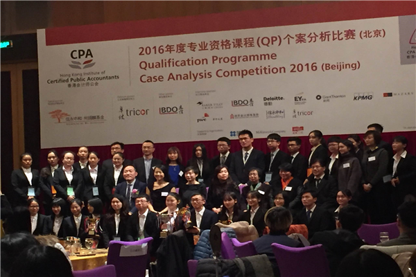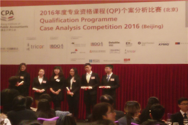 由香港会计师公会举办的2016年度专业资格课程(QP)个案分析大赛在4日在北京圆满落下帷幕。本次大赛吸引了来自内地高校的377支队伍报名参赛。会计学院学子黄怡亭、李丽娴、李堃贤、徐昳文分别带领的四支队伍从377支参赛队伍中脱颖而出,跻身全国40强,表现不凡。