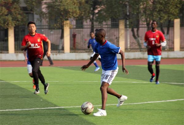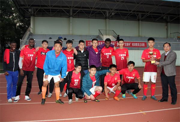 12月8日下午,我校第三届“信毅杯”暨首届“交融杯”蛟湖精英足球赛决赛在留学生与工商管理学院两支队伍之间激烈展开,吸引了一大批师生足球爱好者前来观看助威。两队常规时间战成2﹕2平,最终在点球大战中,留学生队险胜对手摘得桂冠。