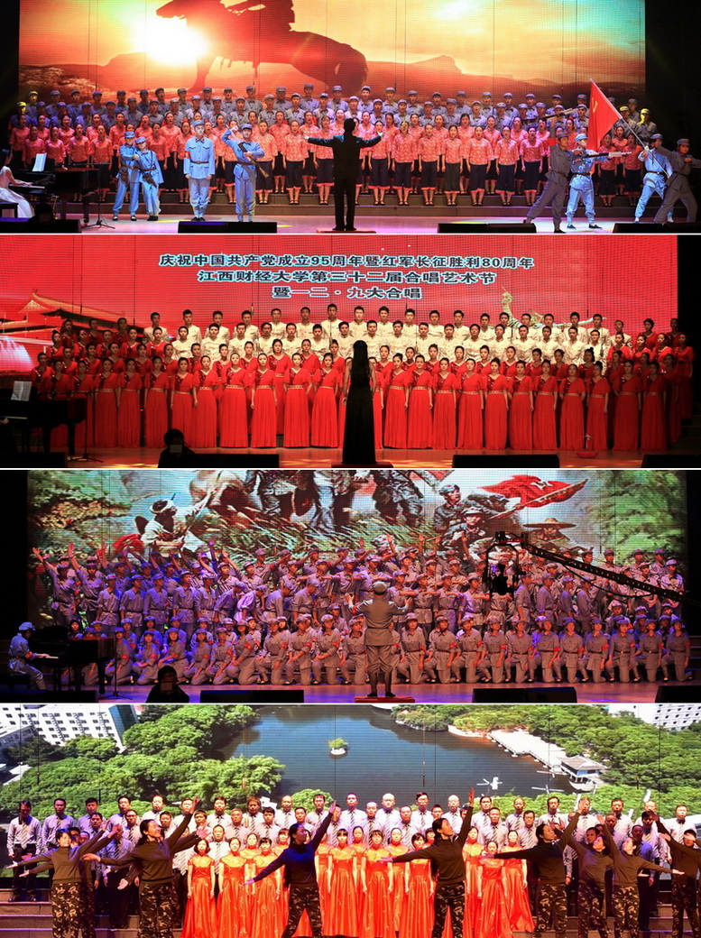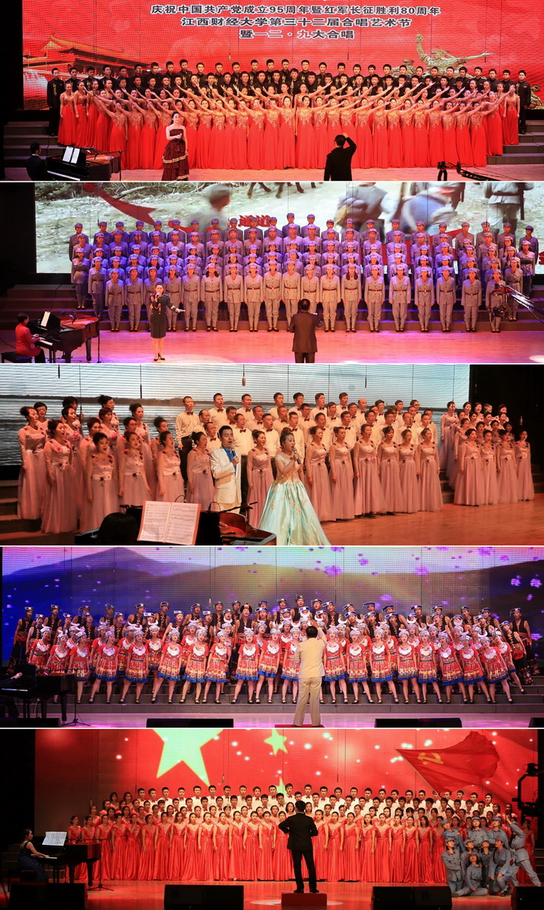 12月10日,庆祝中国共产党成立95周年暨红军长征胜利80周年江西财经大学第三十二届合唱艺术节暨“一二•九”大合唱隆重举行。活动由校党委组织部、党委宣传部、党委学工部、工会、团委共同举办。校长王乔,校党委副书记易小明、副校长蒋金法,校纪委书记杨建林、副校长阙善栋等领导和全校师生1000多人欣赏了演出。