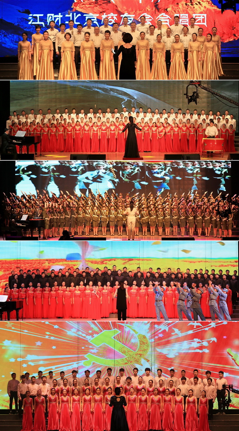 江财北京校友会会长张军、原会长翟钢专程率北京校友表演队回母校参加大合唱。