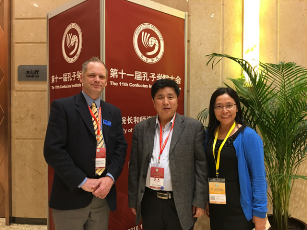本次大会的日程紧凑、议程较多,王小平在参加各项议题讨论之余,还抽空与我校和英国考文垂大学共建的考文垂大学孔子学院执行副院长Matthew Beedham 和考文垂大学亚洲战略合作事务部主任Zhi Finlay进行了短暂会谈。双方就两校的多边合作交换了意见,王小平还对两校孔子学院的共建工作提出了指导性意见。