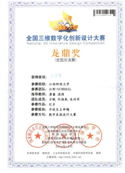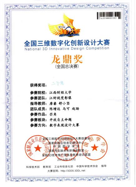 近日,从常州传来捷报,艺术学院NORMAL工作室学生提交的作品在全国三维数字化创新设计大赛中获得三个二等奖——方靓、刘湘胤、朱帅军参赛作品《忆乡》获得全国总决赛龙鼎奖二等奖,江西赛区特等奖、最佳网络人气奖;王纪聪、徐兆妍、郑志濠参赛作品《清明上河图》获得全国总决赛龙鼎奖二等奖,江西赛区一等奖、最佳网络人气奖;陈增达、马可、赵旸参赛作品《芒角》获得全国总决赛龙鼎奖二等奖,江西赛区最佳网络人气奖。