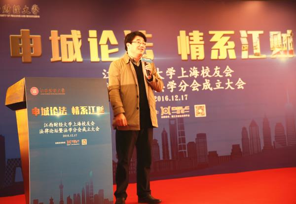 12月17日下午,我校上海校友会法律论坛暨法学院分会成立大会隆重举行。我校副校长邓辉出席并致辞。党委宣传部部长王金海,法学院院长杨德敏,院党委书记贺三宝,院党委副书记毛细荣等应邀出席。曾在法学院工作的张国轩教授、李红梅教授、龚汝富教授、殷洁教授,江财上海校友会、各学院分会负责人,各地法学分会代表,法学院在沪校友等共计200余人参加大会。