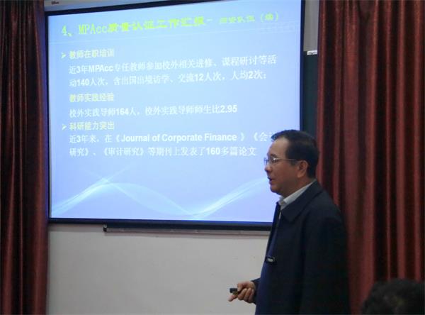 最后,章卫东再次感谢刘永泽教授一行光临指导,为正式认证工作奠定了良好的基础。同样认为瓶颈问题把握地很准确,指出的一些问题也正是发展中一直困扰的问题,表示会计学院、MPAcc教育中心将群策群力,发挥学校会计学科的传统优势,希望能够在全国会计专业硕士领域发挥更多积极作用。(图文/曾海龙 编辑/匡琳)
