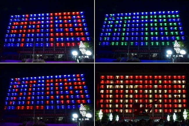 江财的夜色很美,月光下的“崛起”雕塑是那样美艳动人。而在2015年元旦来临之前寒风冷冽的冬夜里,为了筹备次日的“零点升旗暨点亮江西-—大型灯光秀”,你可以看到有几个忙碌的身影奔波在北区综合楼里。为了不影响到在综合楼办公的老师们正常工作,李博文和宣传部的老师以及国旗队的队友们,只能在夜里安装并调试所有的灯光设备。他们顶着寒风,跑遍了北综的11层楼,脚步遍及144间办公室。将灯光设备一个个安装,一遍遍调试,直至凌晨5点,当他看到完整地灯光彩排出现在北综楼上,才在办公室的沙发上和衣而睡。当问及他当晚有多冷时,他不由笑着说:“不冷,和老师同学们为了一个梦想而共同奋斗怎么会感觉到冷呢”?