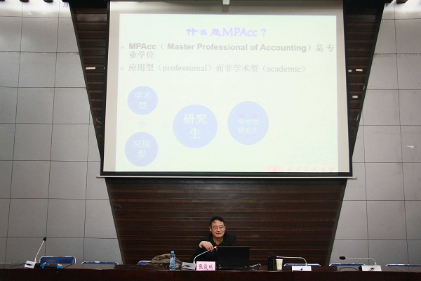 12月29日下午,西安交通大学管理学院副院长、博士生导师张俊瑞教授来校指导 MPAcc学位论文选题与写作规范。会计学院首席教授张蕊、院长章卫东、研究生副院长袁业虎及全体硕士研究生指导教师听取此次专题培训会,会议由导师代表曹玉珊教授主持。