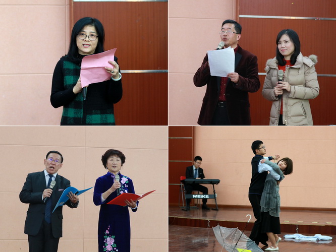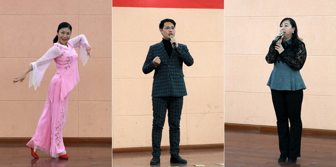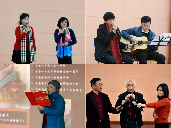 随后进入联谊环节。来自留联会李二永的男声独唱《我的中国心》、民进马鑫的女声独唱《传奇》、农工党杨霞等女声二重唱《清晨我们踏上小道》唱出了统一战线成员的心声。来自民革胡琳瑜的独舞《女儿情》、民建姜海花等的集体舞《女儿情》及九三学社选送的双人舞《原来你还在这里》让大家领略了舞蹈的魅力。知联会林新的诗朗诵《我也是个任性的孩子》、民革廖晓淑等的诗朗诵《老有老的骄傲》从不同角度道出了党外人士的心境。民建万铁羽的葫芦丝《月光下的凤尾竹》及侨联选送的吉他弹唱《栀子花开》等节目也让大家赏心悦目。活动期间,还穿插了“吸管接力”、“买菜对对碰”等游戏节目,令人捧腹大笑。此外,体育学院健美操队、蛟桥园“夕阳美”时装队应邀为联谊会献上了开场舞《潇洒人生》及走秀《梦里水乡》等节目,为联谊交友活动增添了亮色。联谊会在民盟的合唱《明天会更好》中落下帷幕。大家欢聚一堂,茶话新春,联谊现场洋溢着浓浓春意。