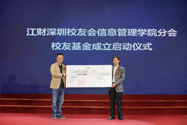 当选会长余定恒深情回顾了自踏进江财那一刻至今的心路历程,并宣布信息校友基金成立,现场向学院捐赠20万元,用于学院2017年和2018年两年的奖助学金。