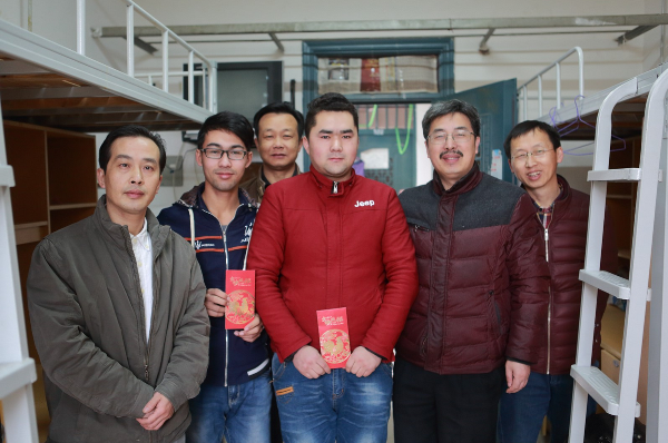 1月25日上午,副校长蒋金法来到蛟桥园7栋学生宿舍,亲切看望和慰问了寒假留守学校的同学们,并代表学校送上新年红包和新春祝福。
