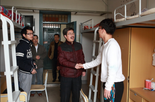 在学生宿舍,蒋金法同学生亲切交谈,与他们拉起了家常。他仔细询问了寒假期间同学们的学习、生活情况。现场气氛温馨融洽。