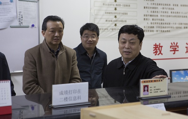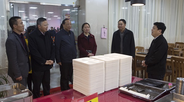 2月19日上午,校长王乔,副校长刘小丽、邓辉、阙善栋先后到蛟桥校区和麦庐校区,检查新学期工作准备落实情况。党办校办主任袁雄随同检查。