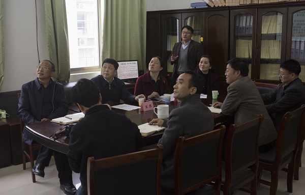在信息管理学院,一张挂在学院办公室的大型“全家福”、一副由学生撰写张贴的大红对联引起了大家的注意。王乔表示,这些学院文化中体现出教师精进团结、学生多才多艺,值得肯定。