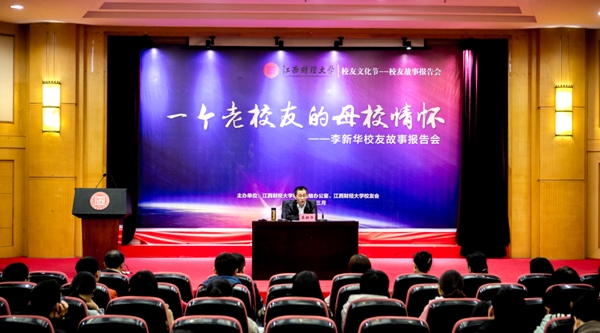 在报告会上,幽默、谦和、激情的李新华先生结合自己从民工到江财学子,从江财学子到企业家的58年成长历程,从六个方面讲述了一个江财老校友对母校的情怀:一是江财改变了人生命运;二是江财的文化和文脉深厚;三是江财学子为什么成功;四是江财学子具有浓厚的家国情怀;五是江财学子具有敢于打拼、勇于担当、积极上进的处理问题的能力;六是江财学子具有江财人特有的新思维,有批判精神,敢于挑战。