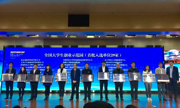 4月10日,由共青团中央、全国学联、全国大学生创新创业联盟、中国青年报社主办的2017年全国大学生创新创业峰会暨第十一届KAB创业教育年会,在河南财经政法大学召开。会上举行了全国首批29家“全国大学生创业园”授牌仪式。我校创业教育学院平台建设科科长兼校团委副书记王昊代表我校接受授牌。