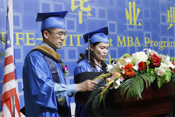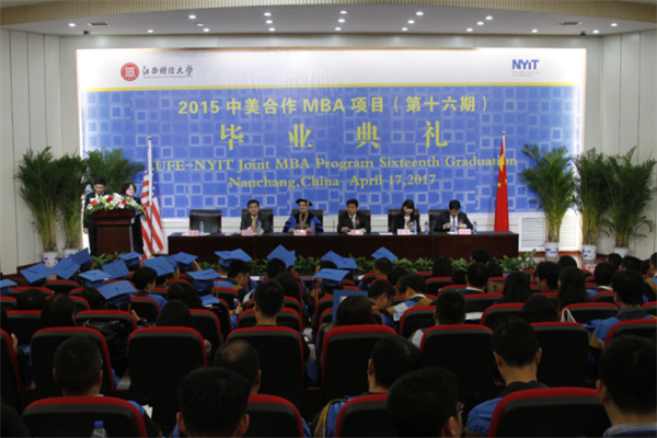 4月17日上午,江西财经大学与纽约理工学院联合举办的2015中美MBA项目(第16期)毕业典礼暨学位授予仪式在青山园校区隆重举行。美国纽约理工学院代校长莱玛·赛勒西,纽约理工学院管理学院副院长刘贤方教授;我校副校长王小平教授、国际合作与交流处处长肖珑教授、EMBA学院院长周玫教授、副院长吴良平副教授以及我校EMBA学院相关负责人出席典礼仪式,与毕业生共同见证毕业的美好时刻。毕业典礼由EMBA学院院长周玫主持。