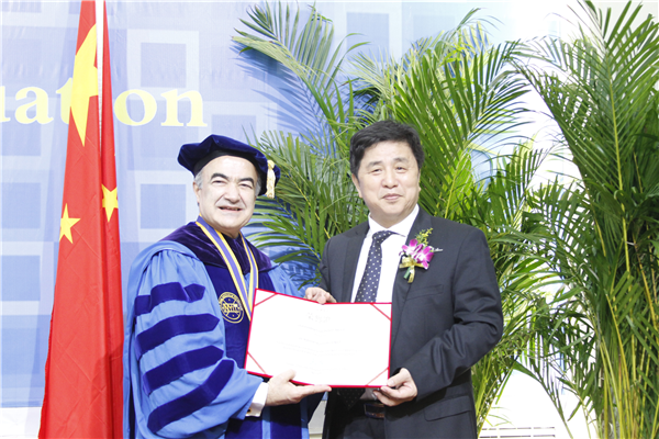 最后,刘贤方宣读《中美MBA第十六期毕业学员名单》,莱玛·赛勒西为毕业生颁发了学位证书并合影留念。