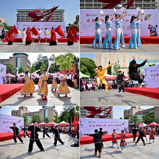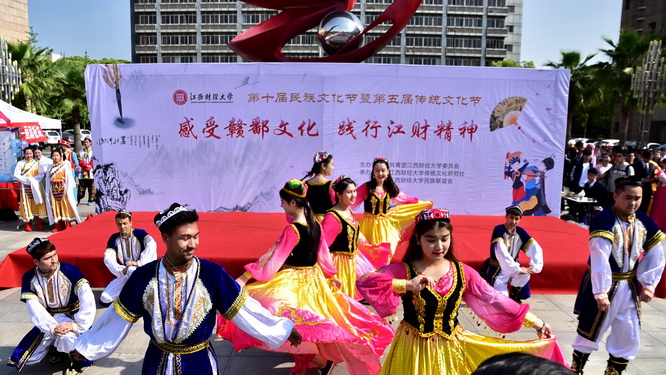 本届“双节”集中展示主题为“感受赣鄱文化 践行江财精神”。主办方现场举办了维吾尔族、藏族民族舞蹈表演,进行了武术表演,还创意地推出了民族服饰走秀环节,现场进行民族服饰竞猜等趣味活动,引领大家深入了解了中国民族服饰知识及民族文化内涵。