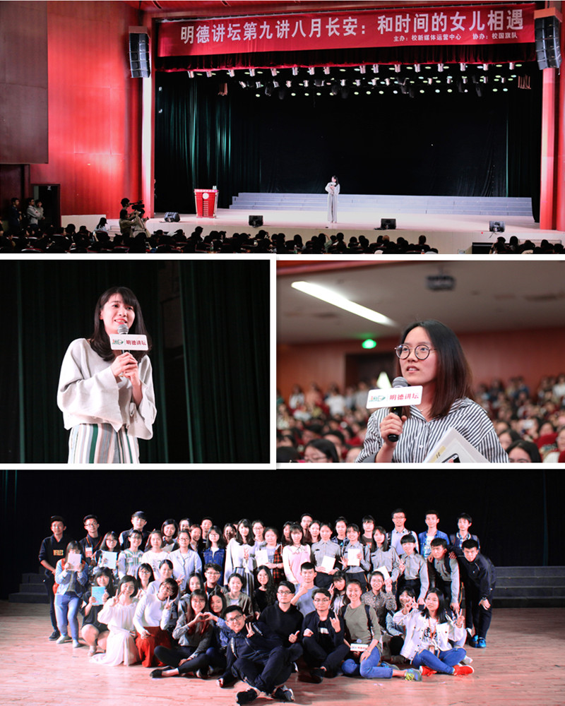 4月28日,初夏微凉,青春文学领军人物刘婉荟(笔名八月长安)做客明德讲坛第九讲,在蛟桥园大礼堂与我校师生分享她对青春和成长的感悟。现场气氛热烈,座无虚席。