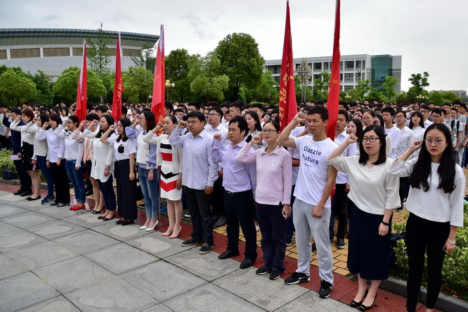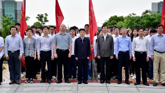 5月4日早上,我校纪念五四运动98周年升旗仪式暨“不忘初心跟党走”重温入团誓词活动在麦庐园和蛟桥园两个校区同时隆重举行。校长王乔,副校长王小平、阙善栋、欧阳康出席活动。学校有关部门负责人、各学院党团干部、辅导员和团员青年学生代表1000余人参加活动。