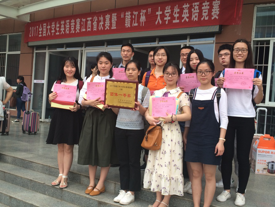 5月14日至15日,2017年全国大学生英语竞赛江西省决赛暨“赣江杯”大学生英语竞赛在江西科技师范大学举行。我校参赛学生与来自全省高校近千名选手同台竞技,以绝对优势斩获5个“赣江杯”大学生英语竞赛综合类特等奖;4个“赣江杯”大学生英语口语竞赛特等奖;15个全国大学生英语竞赛江西省决赛特等奖;并获“赣江杯”大学生英语竞赛C类(本科生组)团体一等奖佳绩。