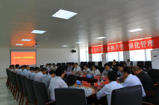 5月18日下午,现代经济管理学院在共青校区召开校区建设工程质量推进会。副校长王小平出席会议并讲话。共青城市南湖新城党工委书记周传友,中航共青公司副总经理刘彦锡、段建新,学院院长王金华,党委书记姜红仁及学院领导班子成员、各承建方代表参加会议。