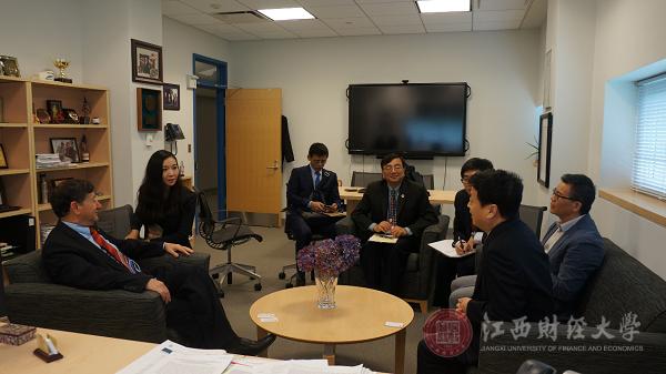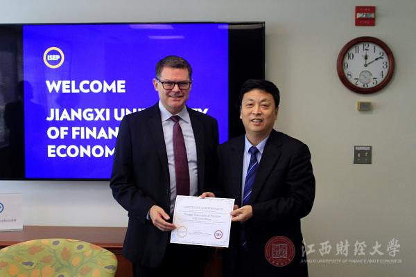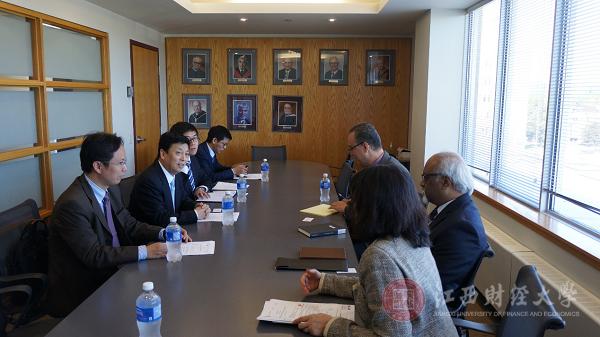 在国际学生交换平台(ISEP)总部访问期间,王乔一行与ISEP总裁John Lucas教授、副总裁Kristen Aguto、亚太地区主管Derek Bradley以及项目负责人Anthony Ciero进行了亲切友好的会谈。会谈中,王乔简要介绍了我校近年来的发展状况以及我校在国际化办学中所取得的成就。他向John Lucas教授介绍了我校全英文授课专业建设的基本情况及国家留学基金管理委员会(CSC)的资助政策,希望能进一步与ISEP加强合作,为更多的江财学子搭建海外学习交流平台,同时吸引更多的优秀海外学生通过ISEP平台来我校学习。John Lucas教授对我校的办学成效给予了充分肯定,并表示将采用更多有效途径向所有成员大学推介江财,争取交换生规模有较大发展。此次会谈增进了我校与ISEP的相互了解,将进一步增强我校在国际上的显示度,并将有效提升学校的国际声誉。